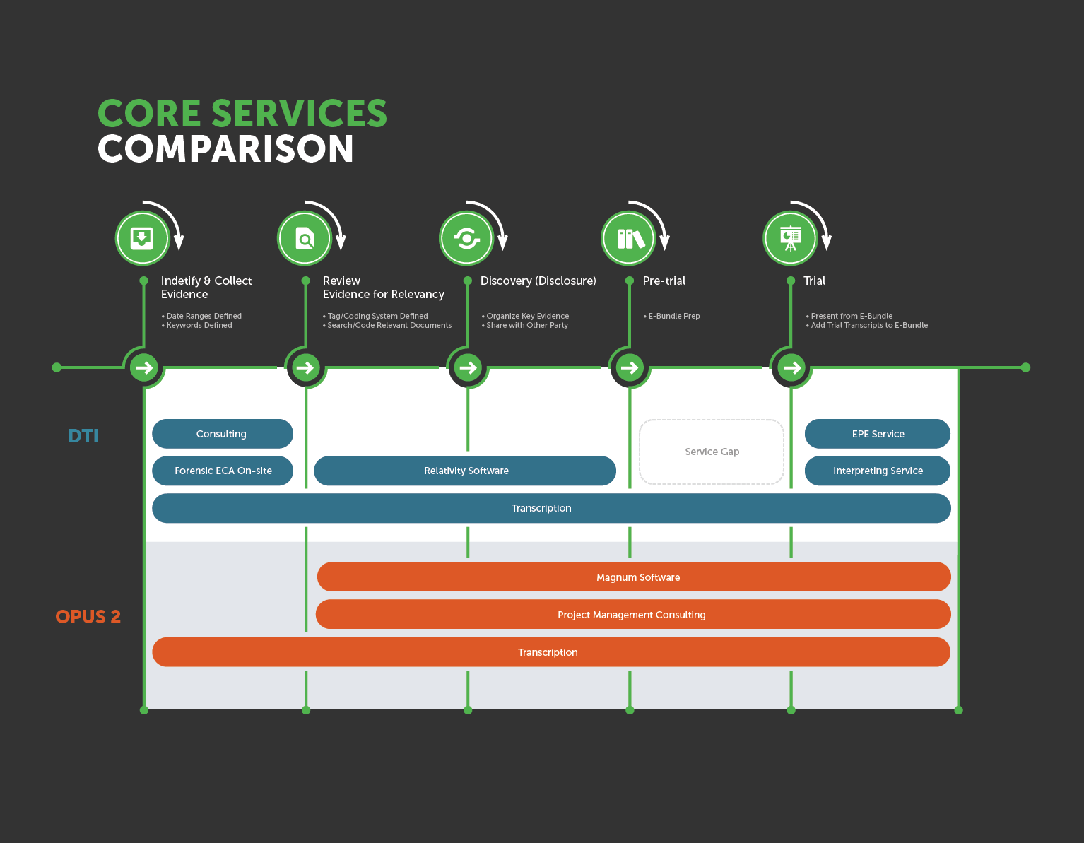 In 2018, DTI Global were losing customers to one of their competitors. Despite being the world's largest Legal Services company, there was a gap in their offering and this small entry point was capitalized on by their competitor leading to Millions in losses for DTI. We were hired to fix this problem.