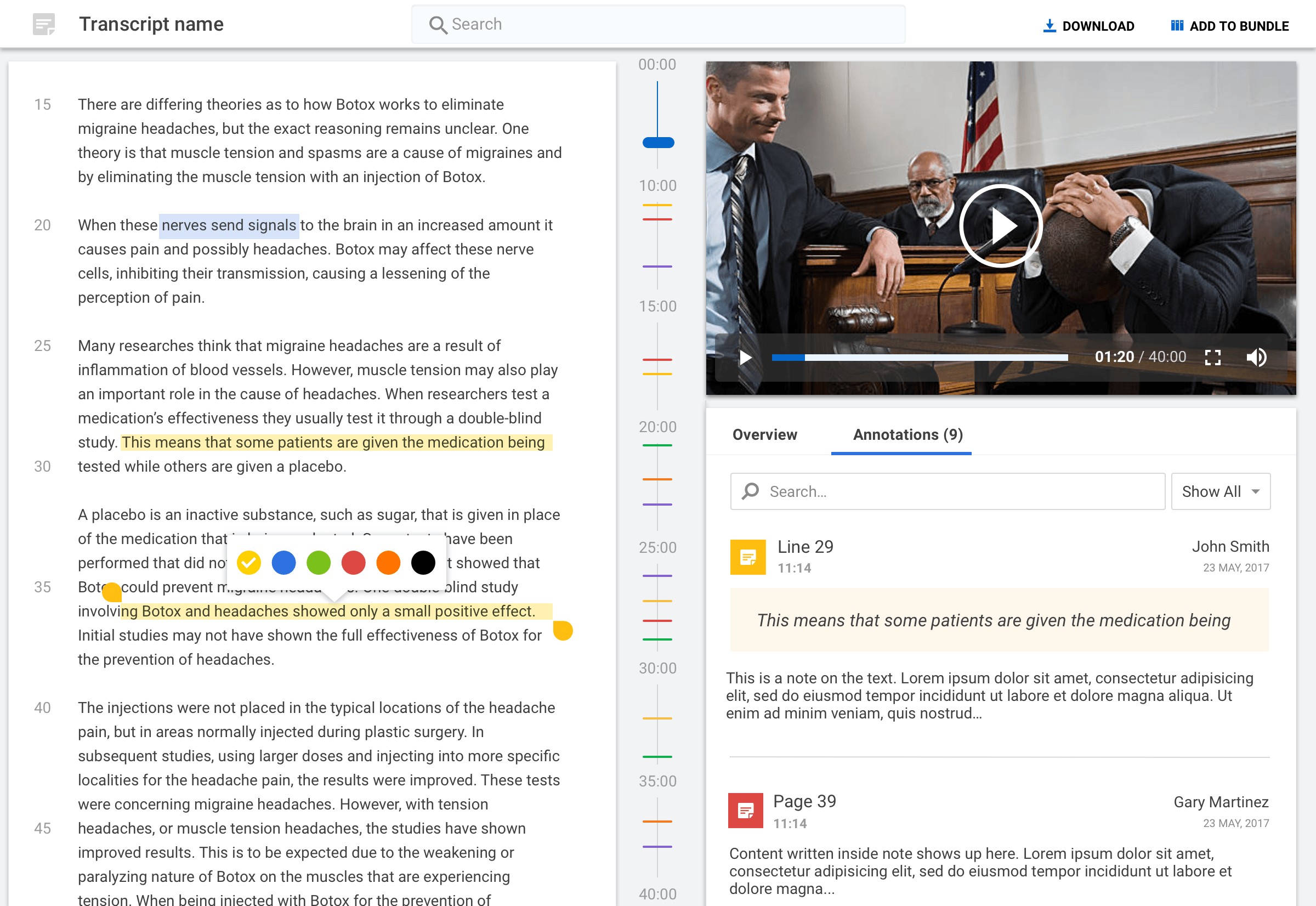 View documents and transcripts side by side for comparison