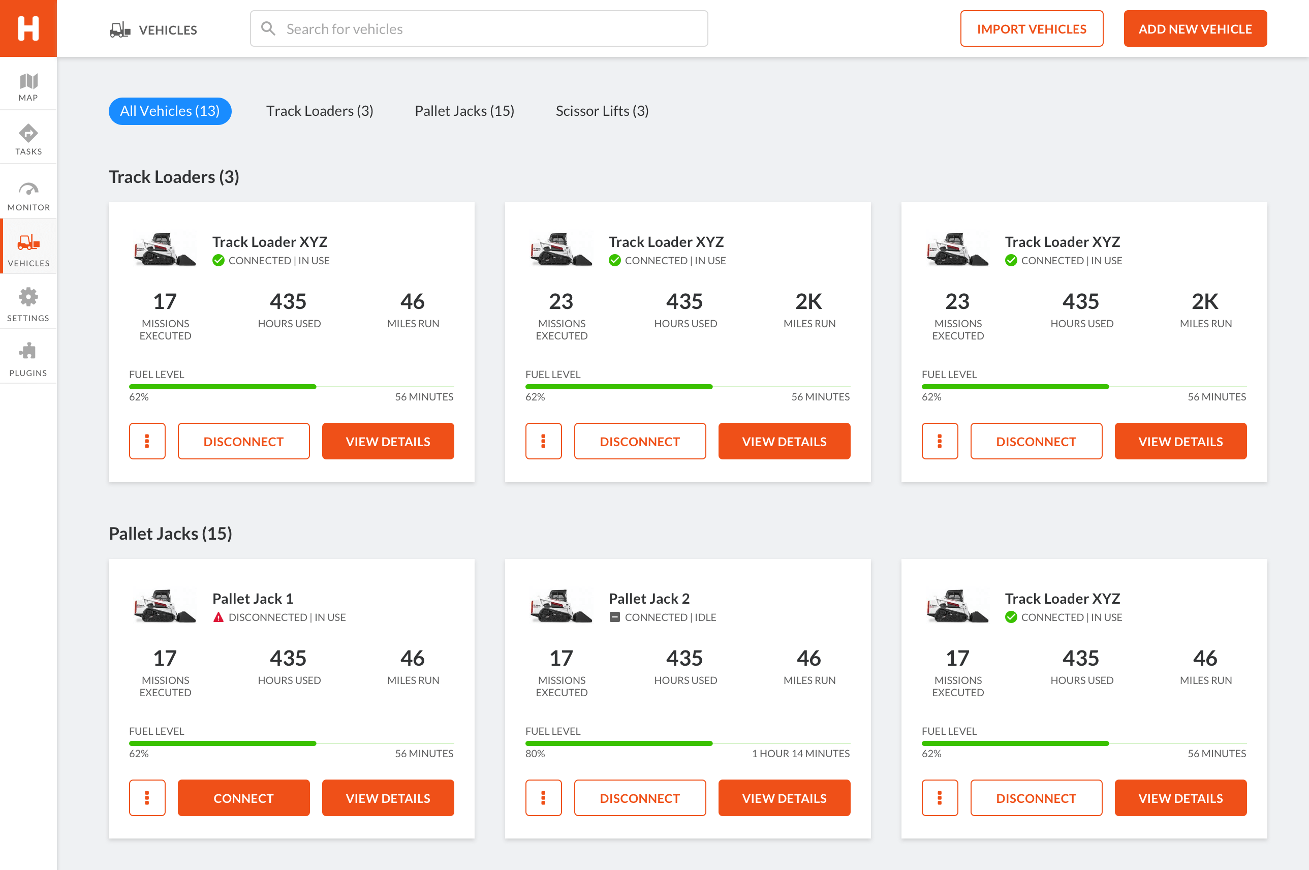Manage a fleet of vehicles by adding and removing vehicles as needed. Once added, vehicles will work in tandem to create the most efficient paths for executing tasks.