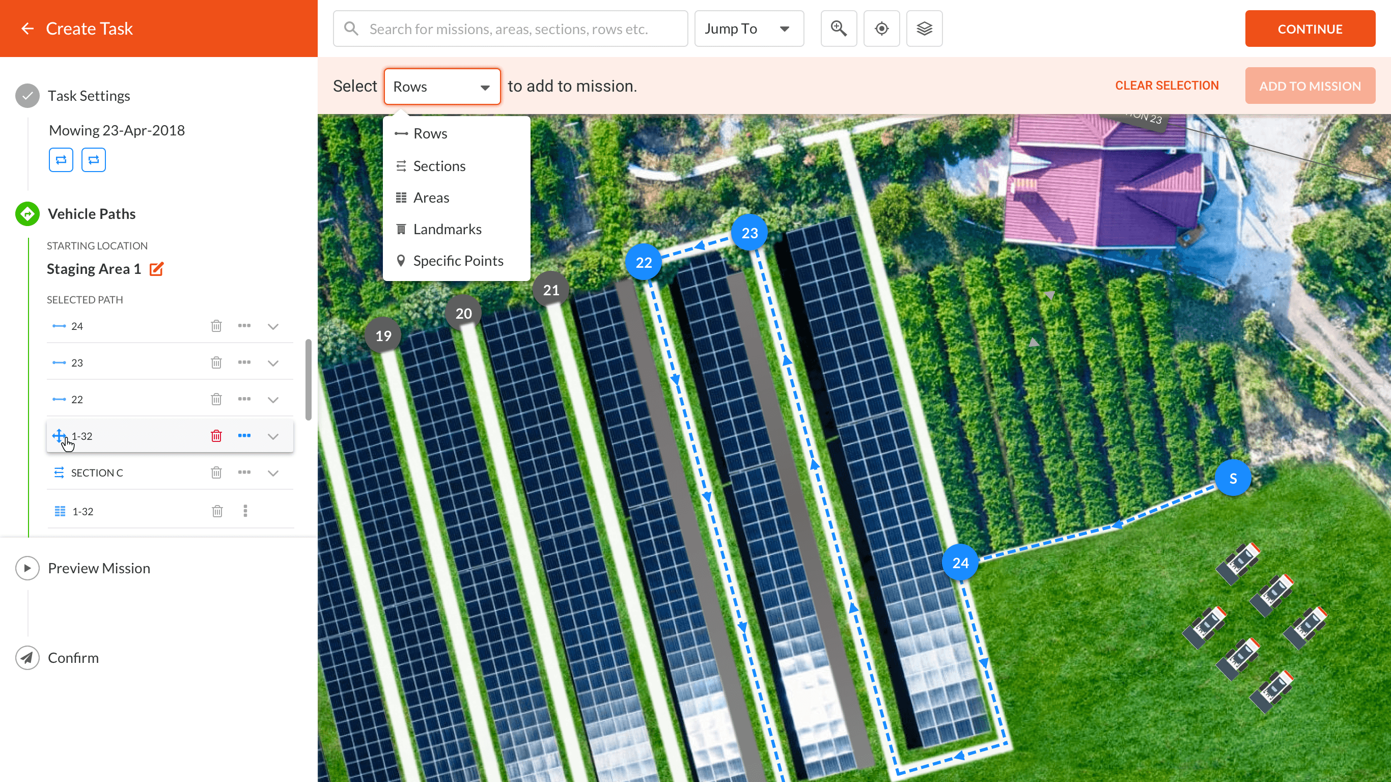 Setup a path and instructions for a fleet of vehicles to follow.