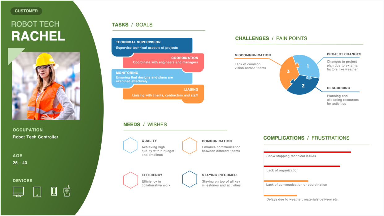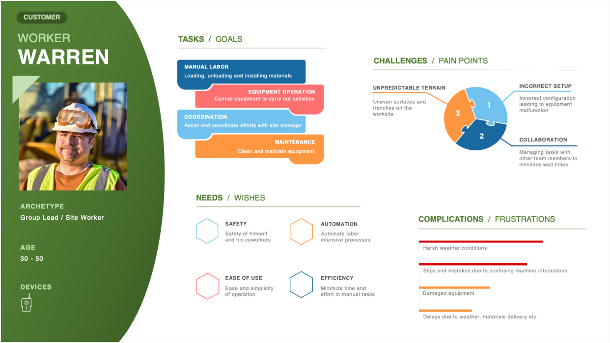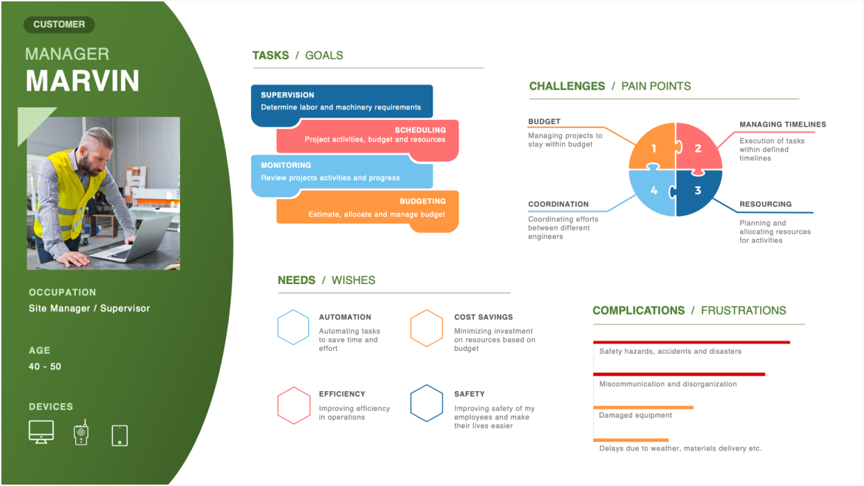 Here's a look at how I documented a roadmap based on interviewing stakeholders to paint the vision for the team. I also conducted contextual observations and interviews with Site Managers to better understand their needs from which the Personas and User Stories were derived. All the insights that were gathered were then converted into meaningful, actionable User Stories sets that were then designed through Agile sprints.